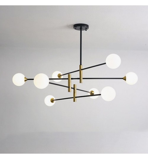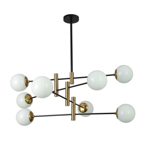 Люстра потолочная со стеклянными плафонами 8шт Баланс-8. Данная люстра рассчитана на помещения с высоким потолками от 3м. Изысканный дизайн и цветовая гамма позволяют ей удачно вписать в любой светлый интерьер. Направляющие можно вращать и выбирать удобное для вас расположение плафонов меняя образ люстры.