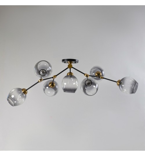 Современная люстра -молекула на 7 плафонов. Данная люстра отлично впишется в помещения темных, серых и бежевых тонов. Сменные лампы позволяют самостоятельно подобрать необходимую яркость и температуру света для Вашего помещения, а также без труда осуществить самостоятельно замену перегоревшего источника света.