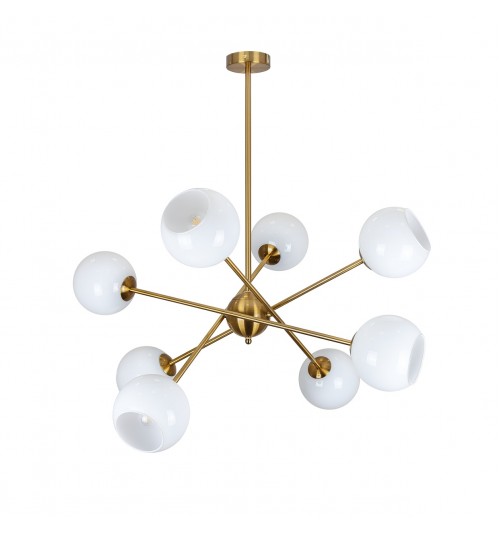 Люстра Луч-8 произведена с использованием материалов: стекло и металл и может использоваться для натяжного потолка. Основным цветом товара является Белый и бронзовый.
