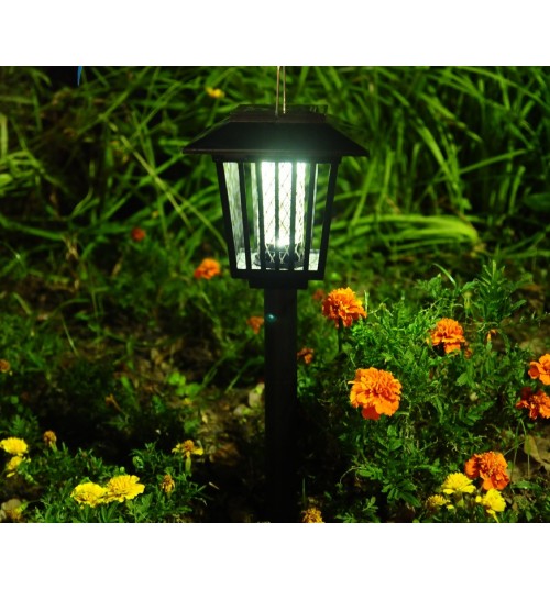 Садовый светильник 2 В 1 "No mosquito" от комаров и для обычной подсветки Газонные светильники - ловушки "No mosquito" будут отличным помощником на дачном и придомовом учтастке в летнее время. Данные светильники излучают свет определенного спектра кторый переключает внимание москитов с намеченой им жертвы на светильник-ловушку, где садясь на специальную решетку внутри светильника насекомые погибают. Есть переключатель для перевода светильника в режим садовой подсветки с обычным светом. Если Вы любитель рыбалки и отдыха на природе данные светильники будут незаменимым атрибутом в вашем рюкзаке. Характеристики Высота светильника без ножки 14см Ширина 14 см Высота светильника с ножкой 50см Питание солнечная батарея Время зарядки 4-6ч Время работы 6-8ч Брызгозащита Да Температура света УФ + 6000К (Переключается) Применение : От комаров, От моли, От муравьев, От мошек