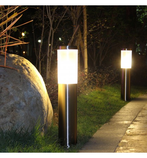 Садово-парковый светильник для декоративной подсветки придомовых и садовых территорий. Столбики выполенены из нержавеющей стали и имеют плафон из противовандального пластика. Разводка провода идет под землей в неглубокой траншее.