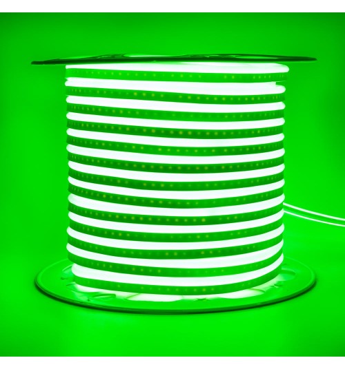 Легко сгибающийся зеленый (G) ЛЕД неон №51-G-АVT NEON серии AVT имеет сверх интенсивные светодиоды. Если захотеть его возможно изогнуть, из-за этого он имеет свойство получать любые формы. Подключать в одну линию до 50 м ленты без эксплуатации дополнительных блоков питания и усилителей позволит сделать неон комфортным и практическим.